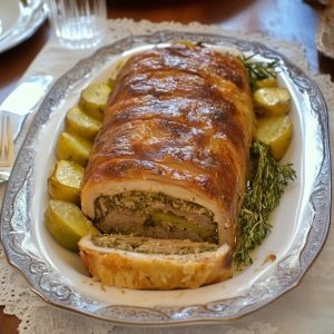 Cuoci il polpettone in forno preriscaldato a 180°C per circa 45-50 minuti, girandolo a metà cottura, fino a che non risulta dorato e ben cotto all’interno. Se le patate non sono ancora pronte, prosegui la cottura per altri 10-15 minuti. ![]()
