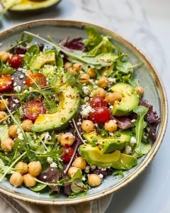 Z dodatkiem fetty: Aby sałatka nabrała bardziej wyrazistego smaku, możesz dodać pokruszoną fetę. Świetnie kontrastuje z kremowym awokado.