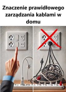 Inwestowanie czasu w uporządkowanie kabli w domu nie tylko poprawia estetykę, ale także przyczynia się do bezpieczeństwa rodziny i urządzeń. Dobre zarządzanie kablami, jak pokazano w pierwszej części obrazu, to prosty krok, który może znacząco wpłynąć na codzienne życie.